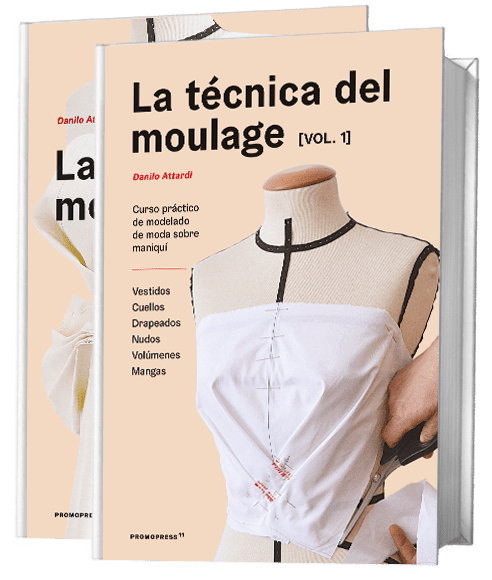 «Técnica del Moulage» de Danilo Attardi es un libro especializado en el arte del moulage, una técnica de diseño de moda que implica la creación de patrones y formas directamente sobre un maniquí.